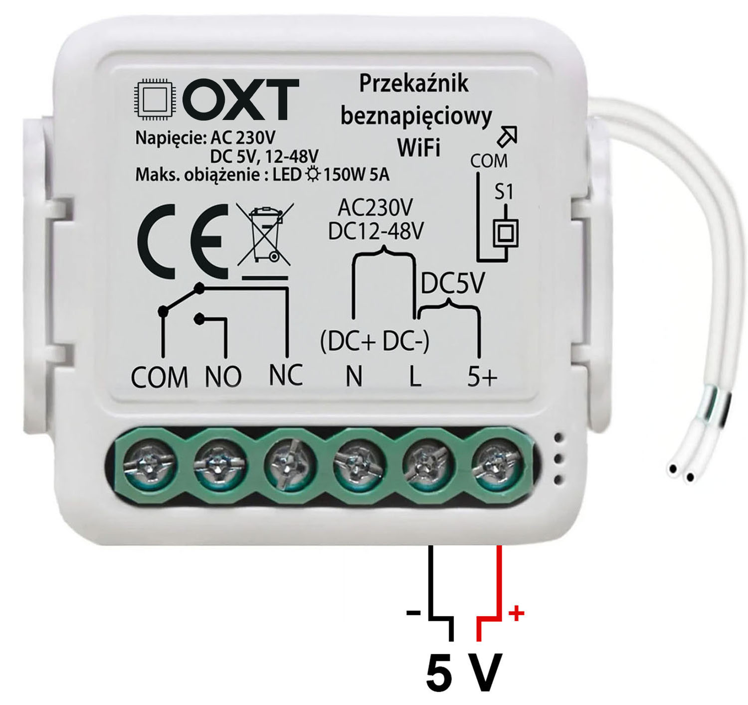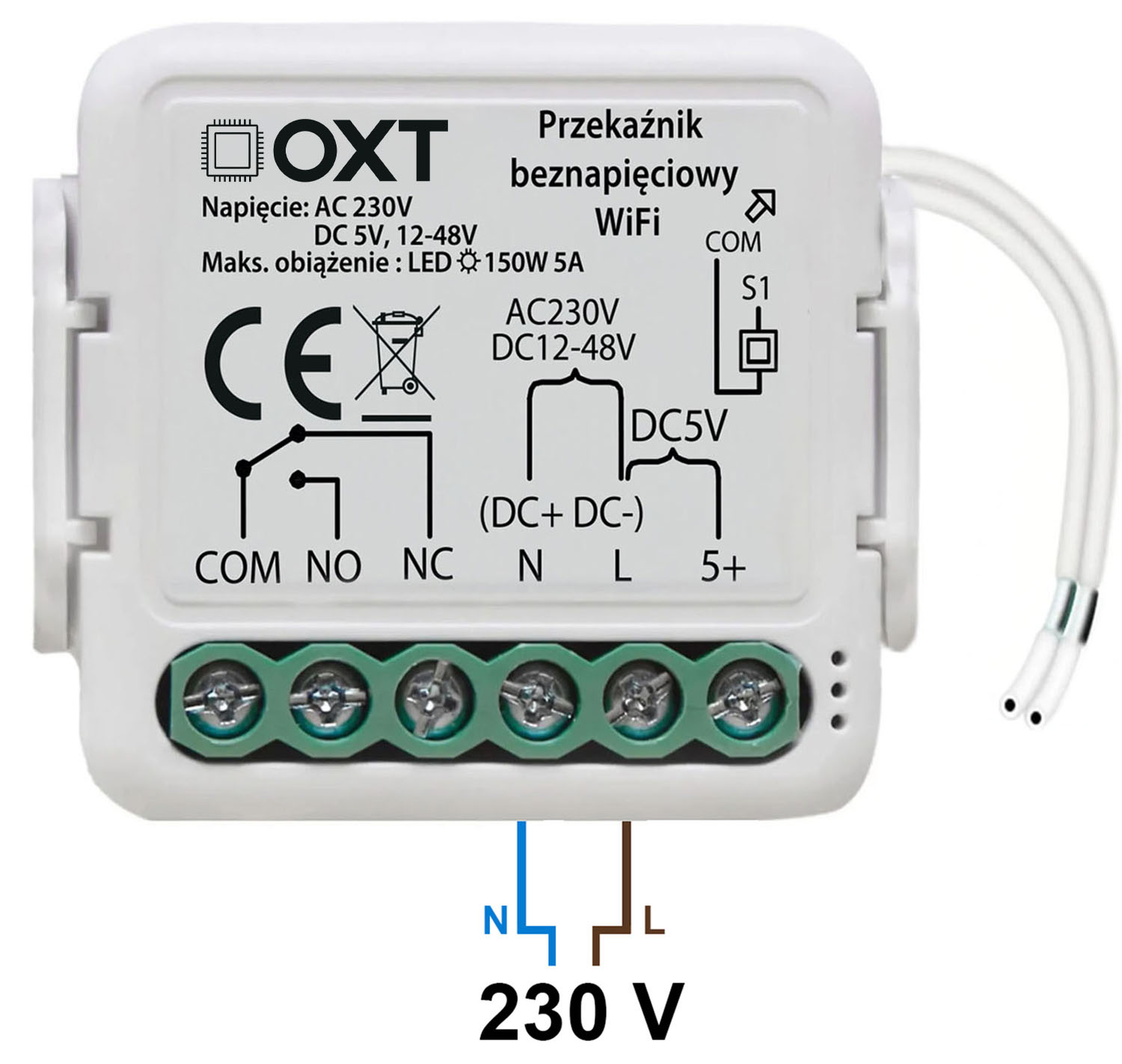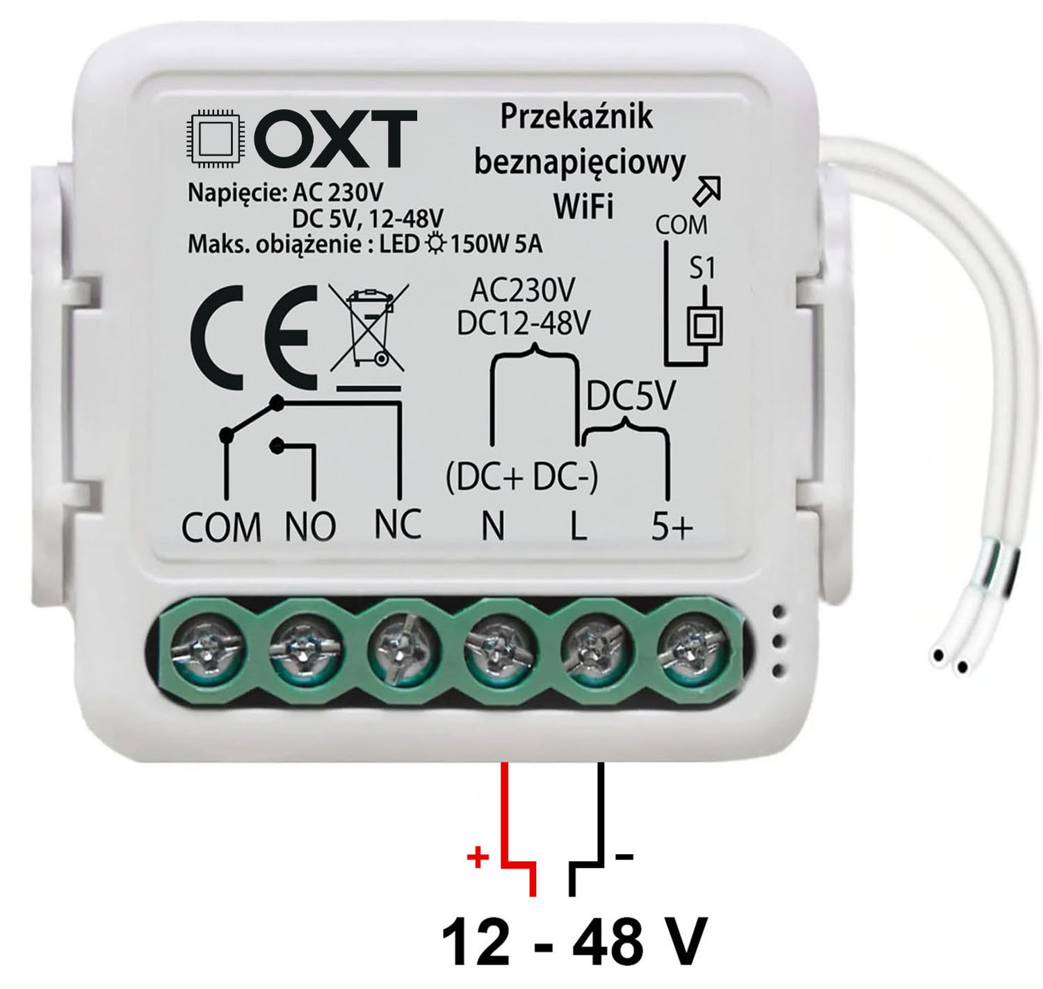 - OXT Mini voltage-free relay 12-48V DC / 230V AC WiFi TUYA