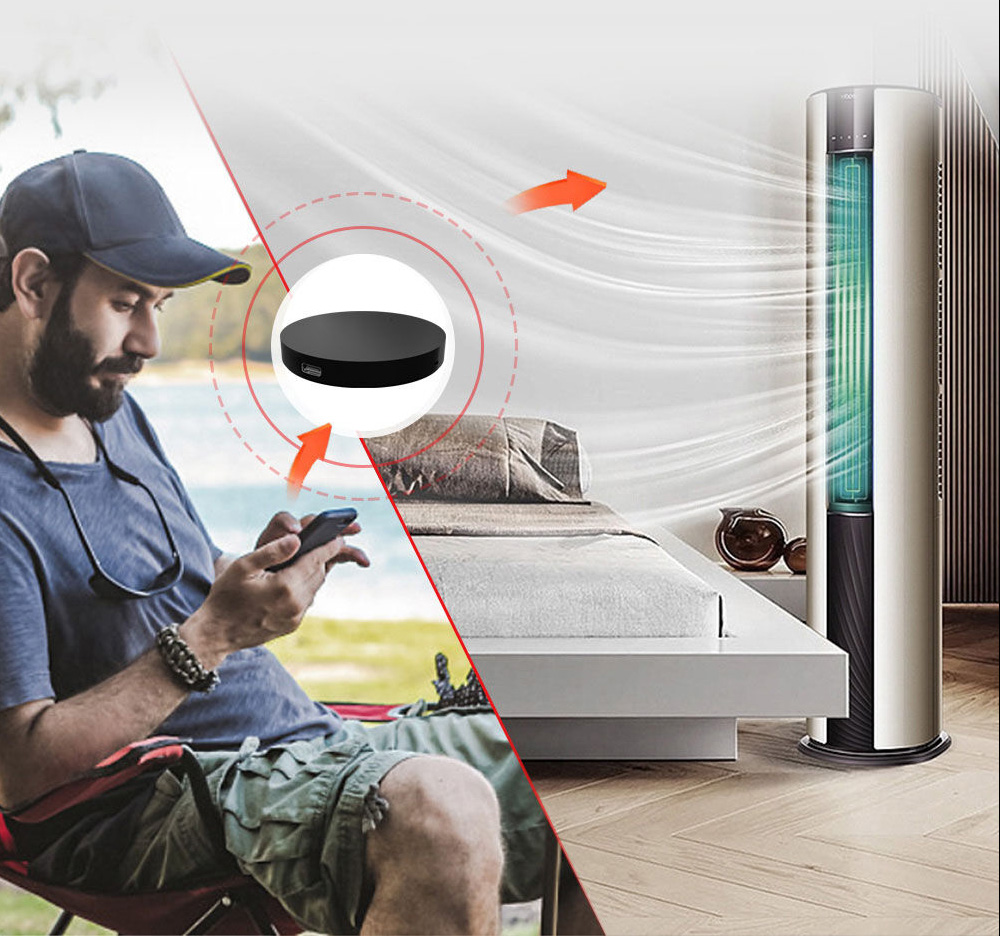 Uniwersalny pilot IR, który pozwoli Ci pozbyć się plątaniny pilotów. Dzięki niemu możesz sterować wszystkimi urządzeniami na podczerwień (takimi jak TV, klimatyzacja, DVD, zasłony) za pomocą swojego smartfona z systemem iOS lub Android, z każdego miejsca i o każdej porze.