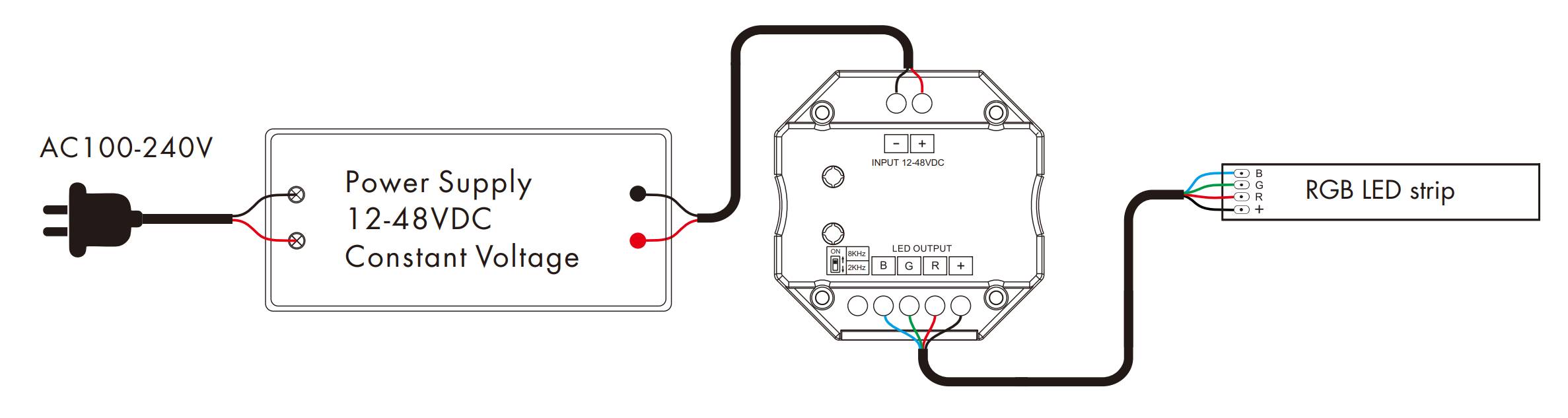 - ✅ Connection: 12–48 V DC power input and wires to RGB LED strip