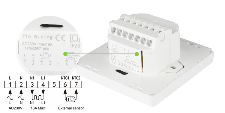 ✅ Built-in precise air sensor and the option to connect an external NTC3950 10k floor sensor (included)