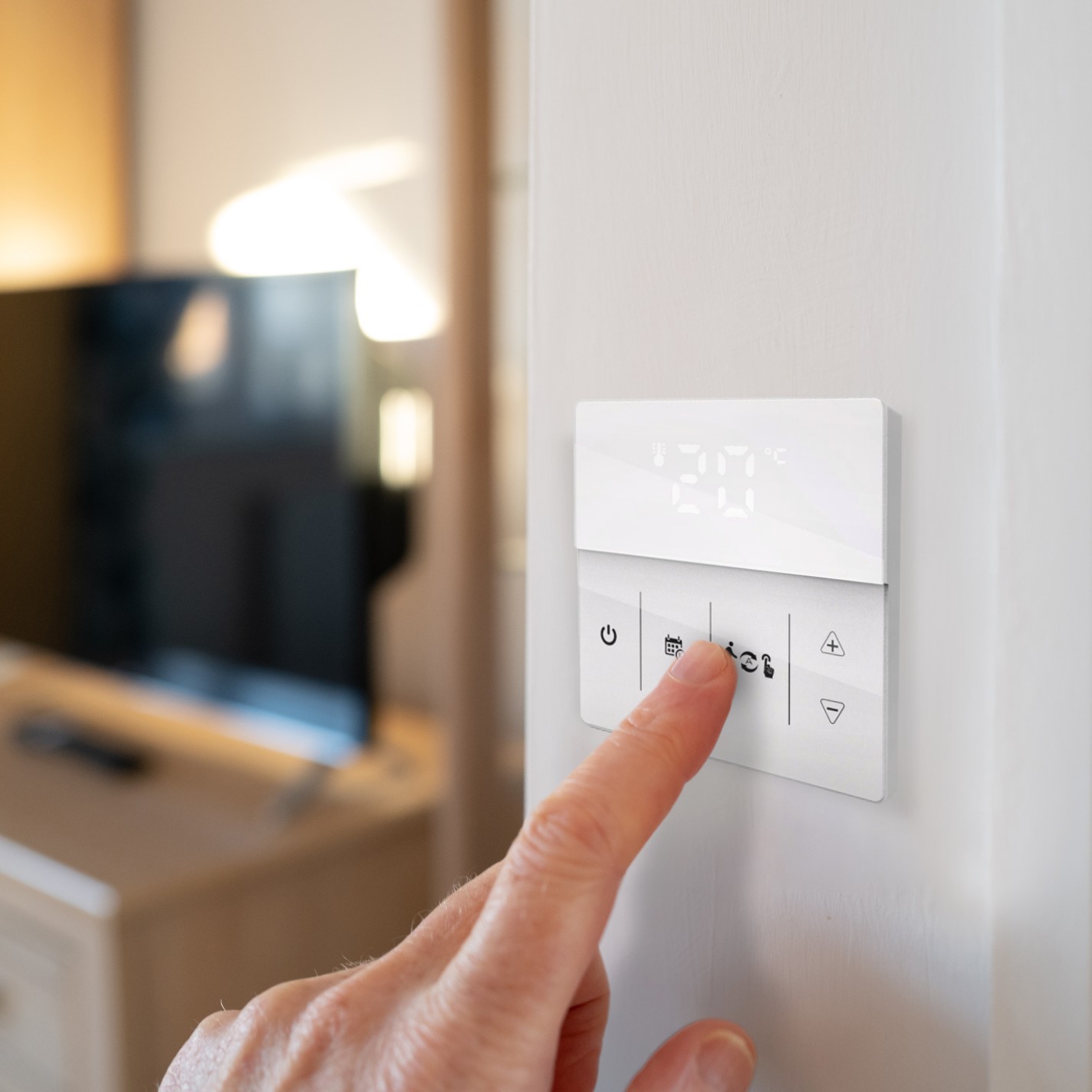 You can use only the air sensor, only the floor sensor, or both simultaneously – ensuring safe underfloor heating, especially for wooden floors.