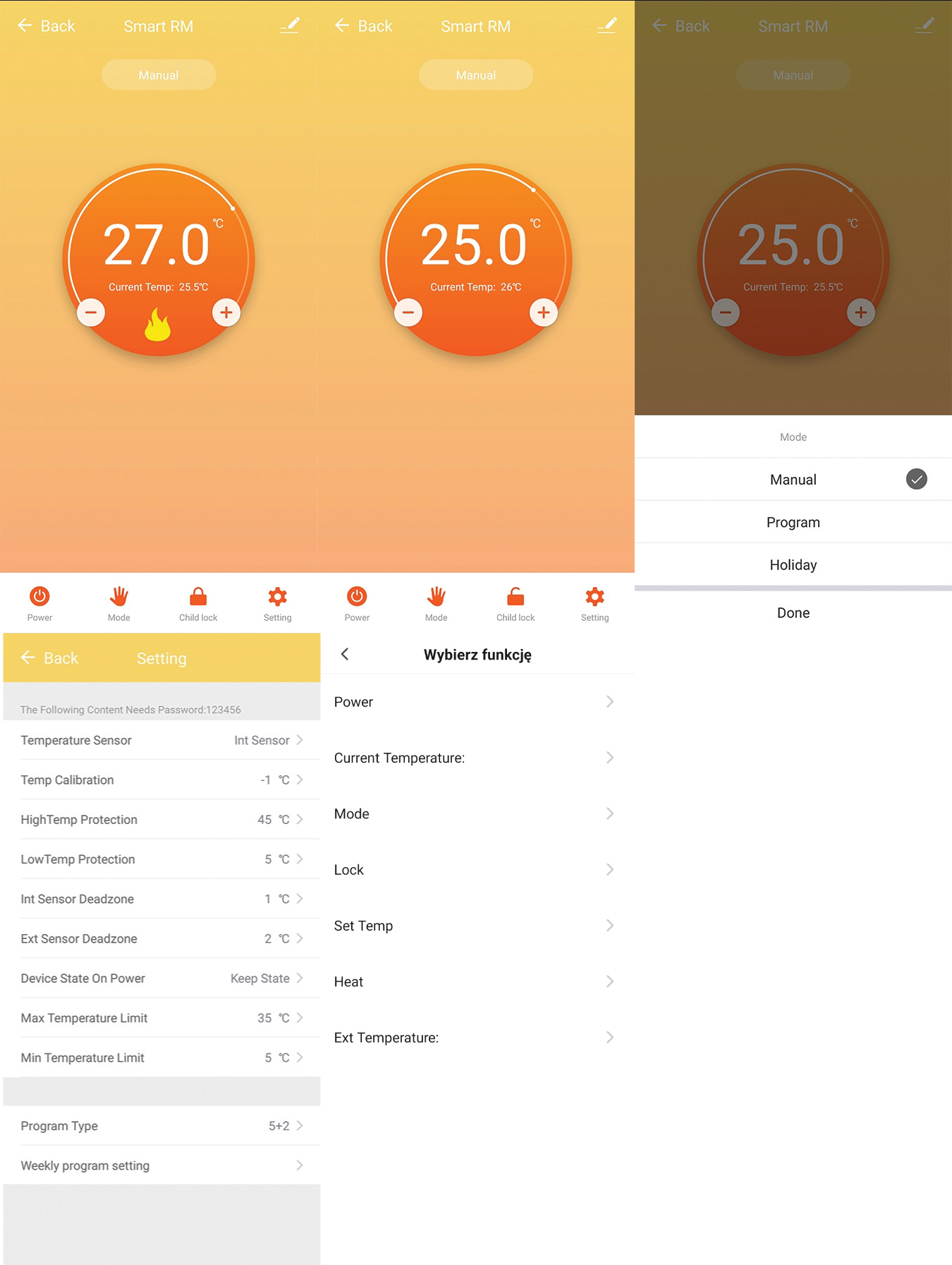 In the Tuya app, you can set schedules, modes, temperatures, and protections according to your needs. The thermostat supports automation based on the heating/not heating function, allowing, for example, relay control.
