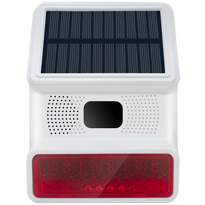 Ta wielofunkcyjna syrena solarna wykorzystuje energię słoneczną do zasilania wbudowanej baterii i działa jako samodzielna centrala alarmowa.