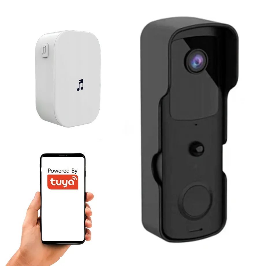 Wideodomofon zewnętrzny dzwonek czarny WiFi TUYA w zestawie z wewnętrznym dzwonkiem do gniazdka 230 V