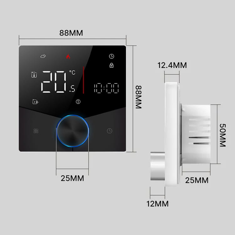 Inteligentny termostat z pokrętłem | Czarny| Obciążalny | 16A | WiFi | TUYA