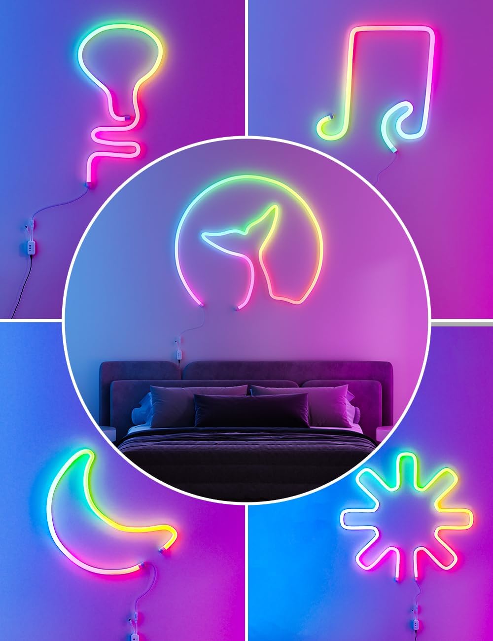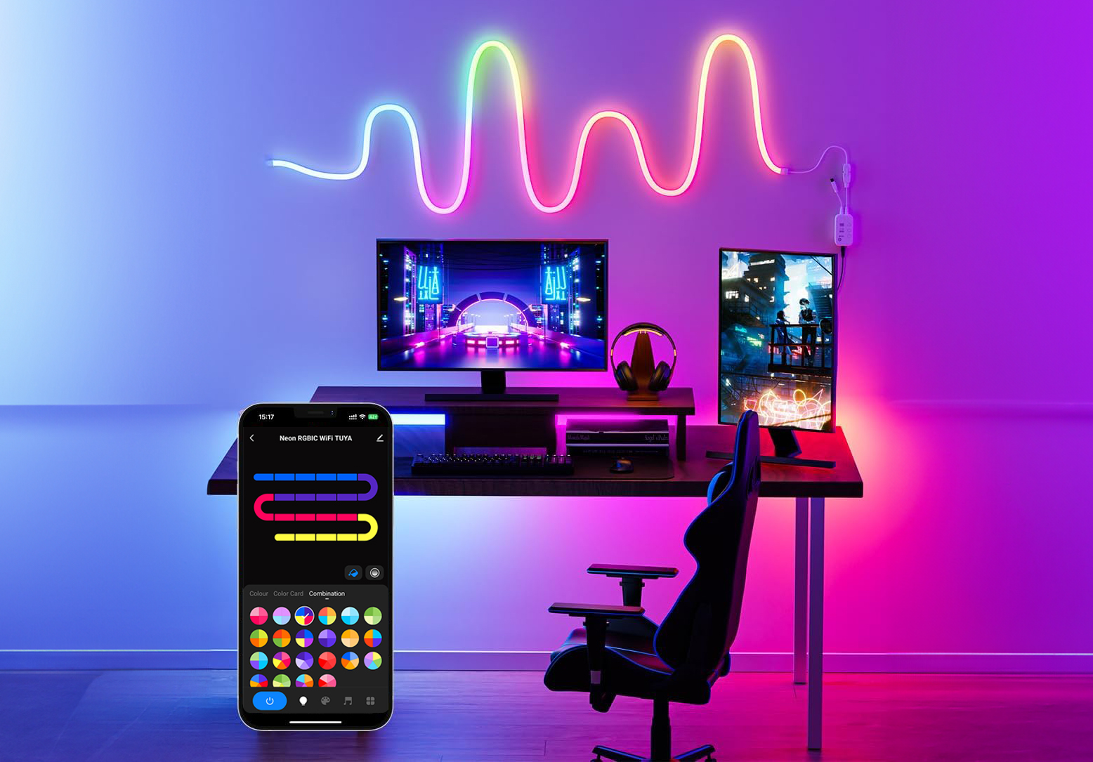 Dzięki możliwości sterowania za pomocą aplikacji mobilnej TUYA, możesz łatwo dostosować kolor i natężenie światła, tworząc niesamowite efekty świetlne. Dodaj wyjątkowy akcent do swojego domu lub biura dzięki tej nowoczesnej taśmie LED RGBIC. Neon jest wykonany z trwałego silikonu i wytrzymałego tworzywa o podwyższonym IP65.
