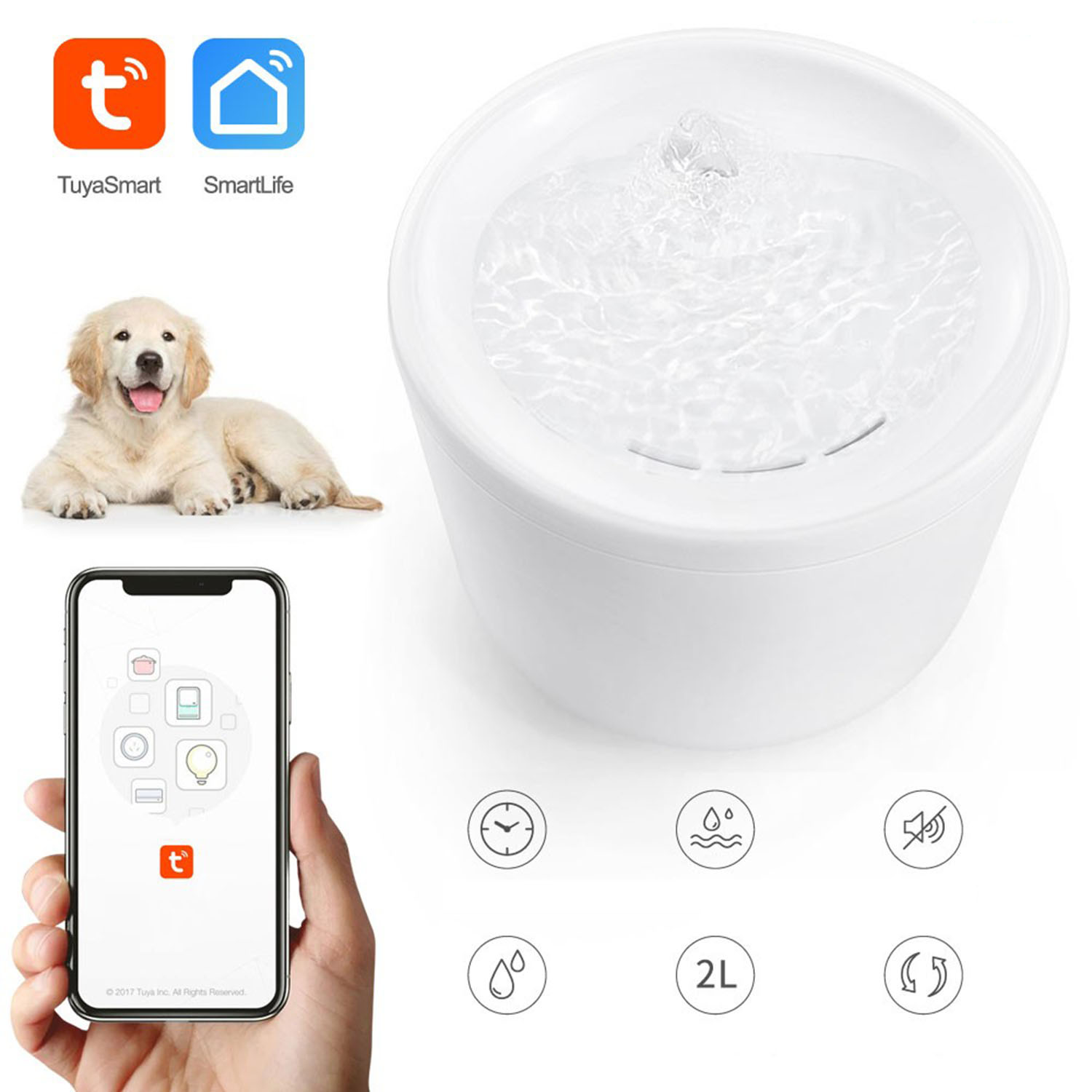 - Inteligentne poidło dla psa kota 2L Filtr UV WiFi TUYA