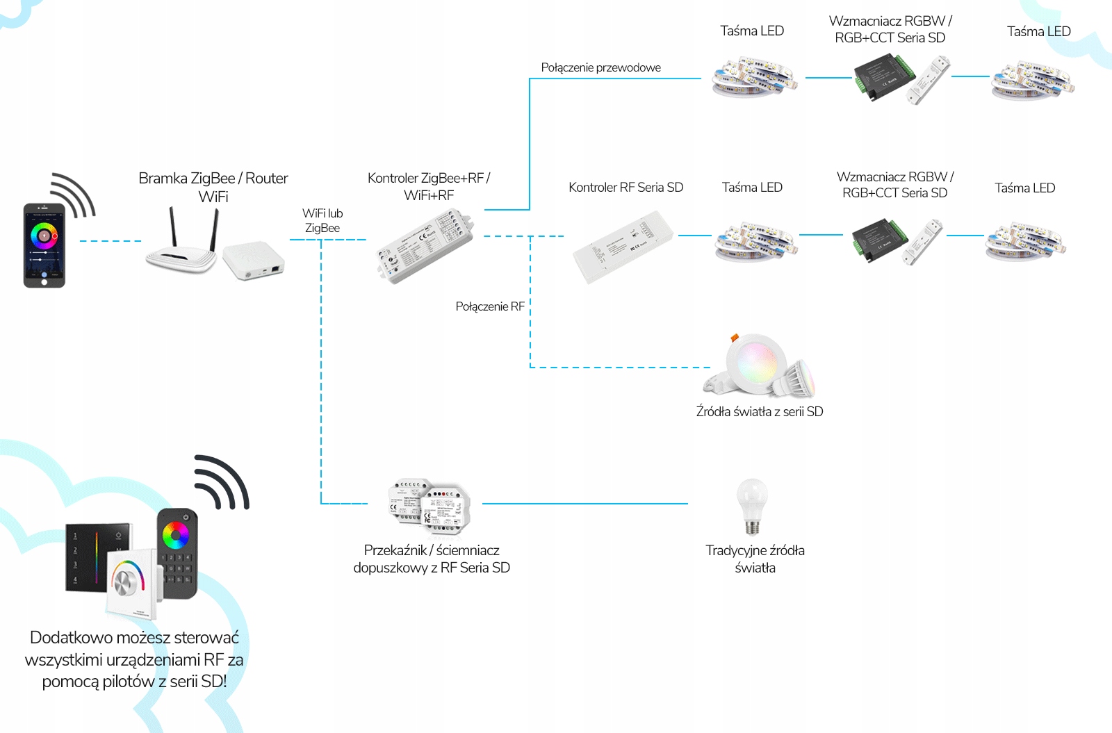 - Pilot Mono Ściemniacz Panel Slim Biały Naścienny 4 strefy LED RF 2.4GHz Seria SD