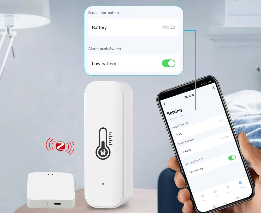 - 1 × Sensor temperatury i wilgotności ZigBee TUYA
