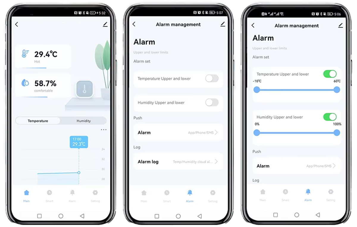 ✅ Powiadomienia i alerty: Otrzymuj komunikaty o przekroczeniu ustalonych progów temperatury i wilgotności.