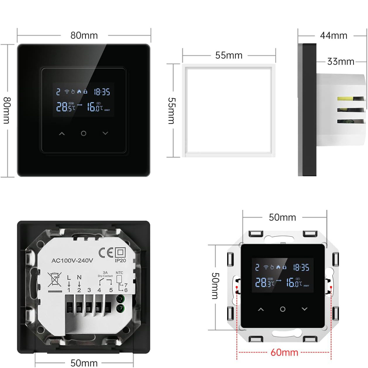 PSMART INTELIGENTNY TERMOSTAT ZWIERNY PIEC BOJLER 3A CZARNY RM ZigBee TUYA