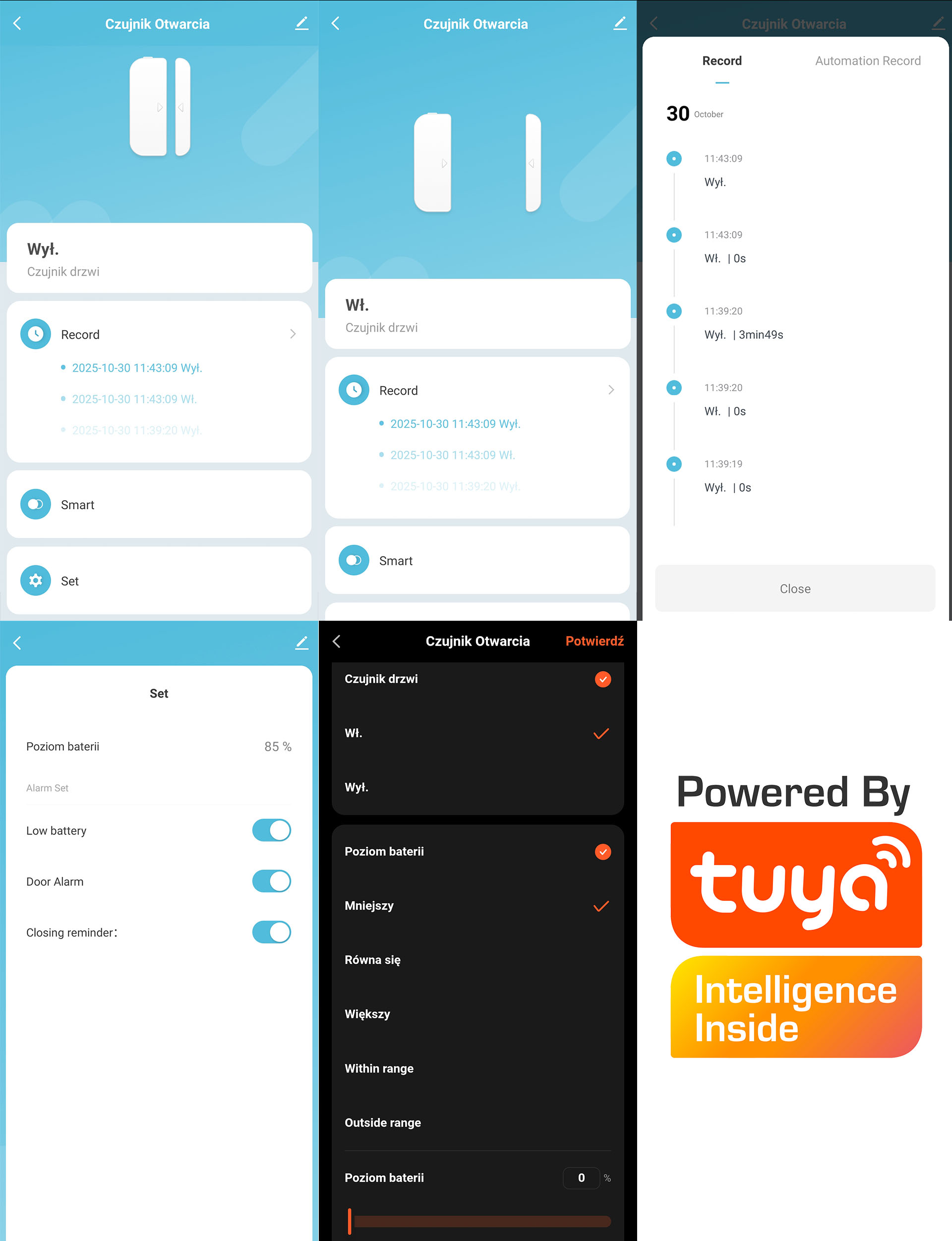 - ▶️ Sprawdzaj status drzwi/okien w czasie rzeczywistym.