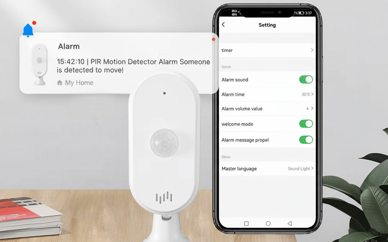 - Otrzymuj alerty PUSH w aplikacji Tuya / Smart Life, gdy tylko czujnik wykryje ruch.