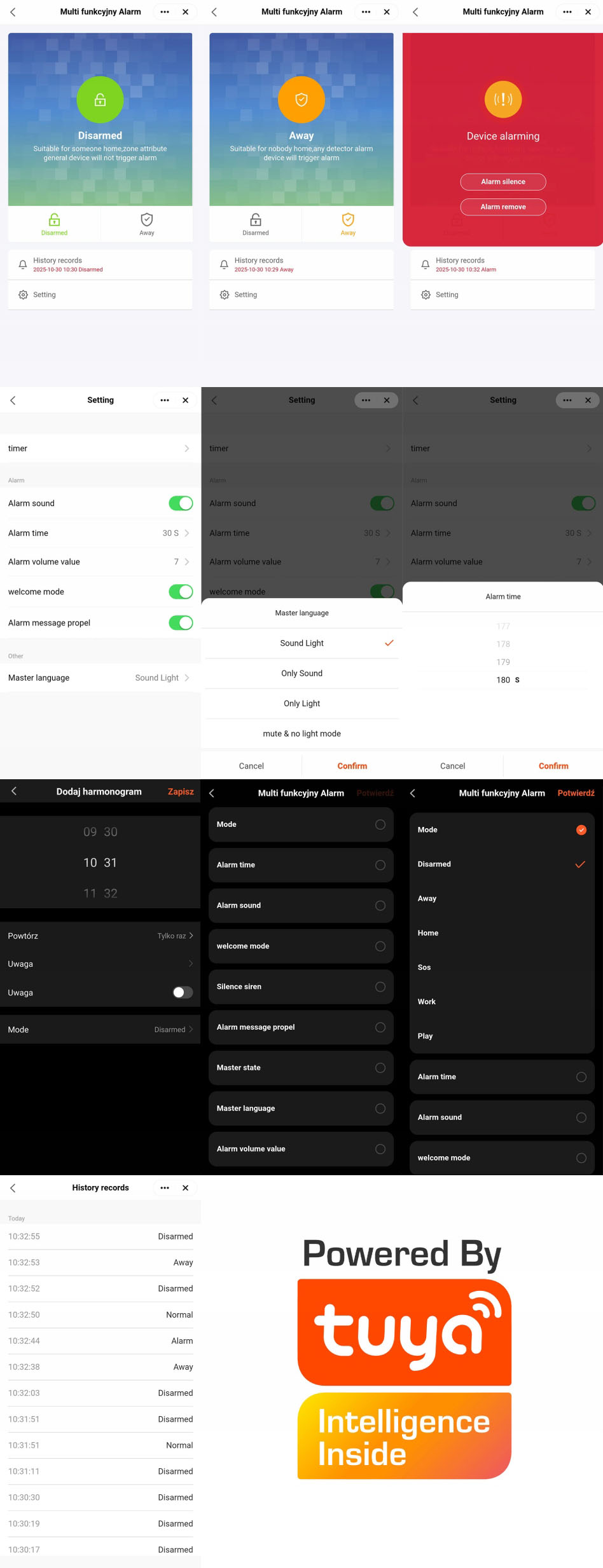 - Uzbrój, rozbrój lub zmień tryb alarmu z poziomu aplikacji Tuya Smart.