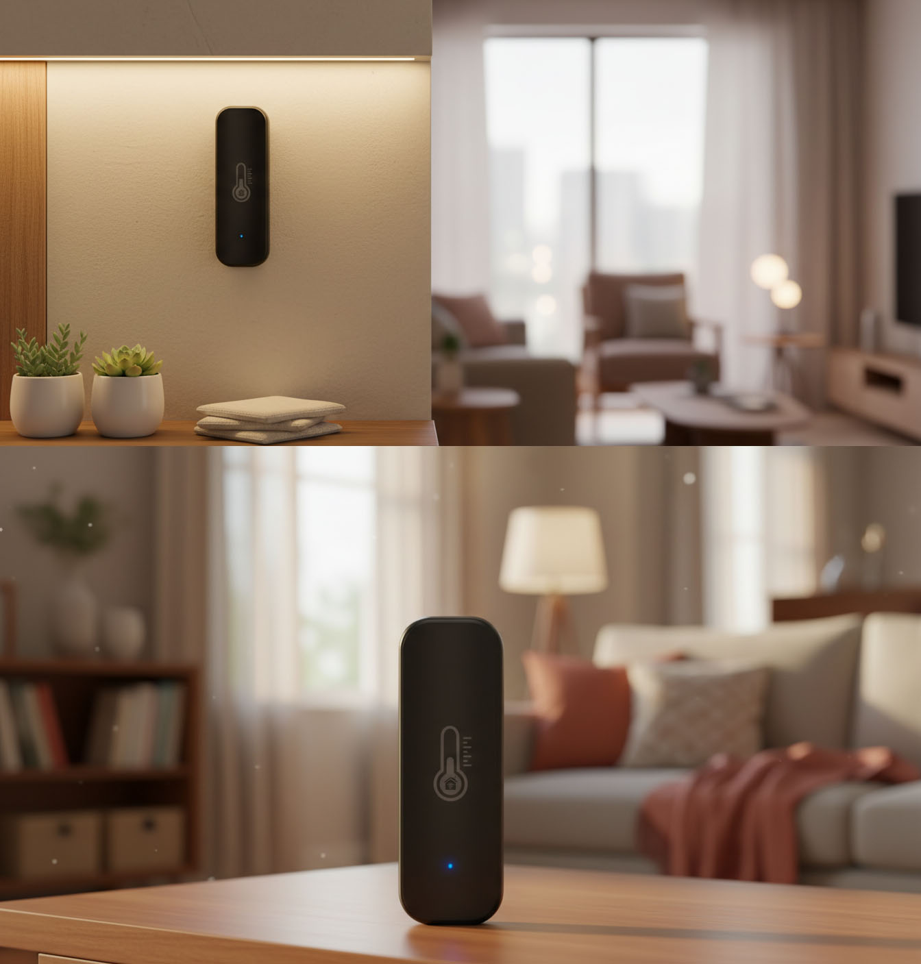 - 1 × Sensor temperatury i wilgotności (czarny, WiFi)