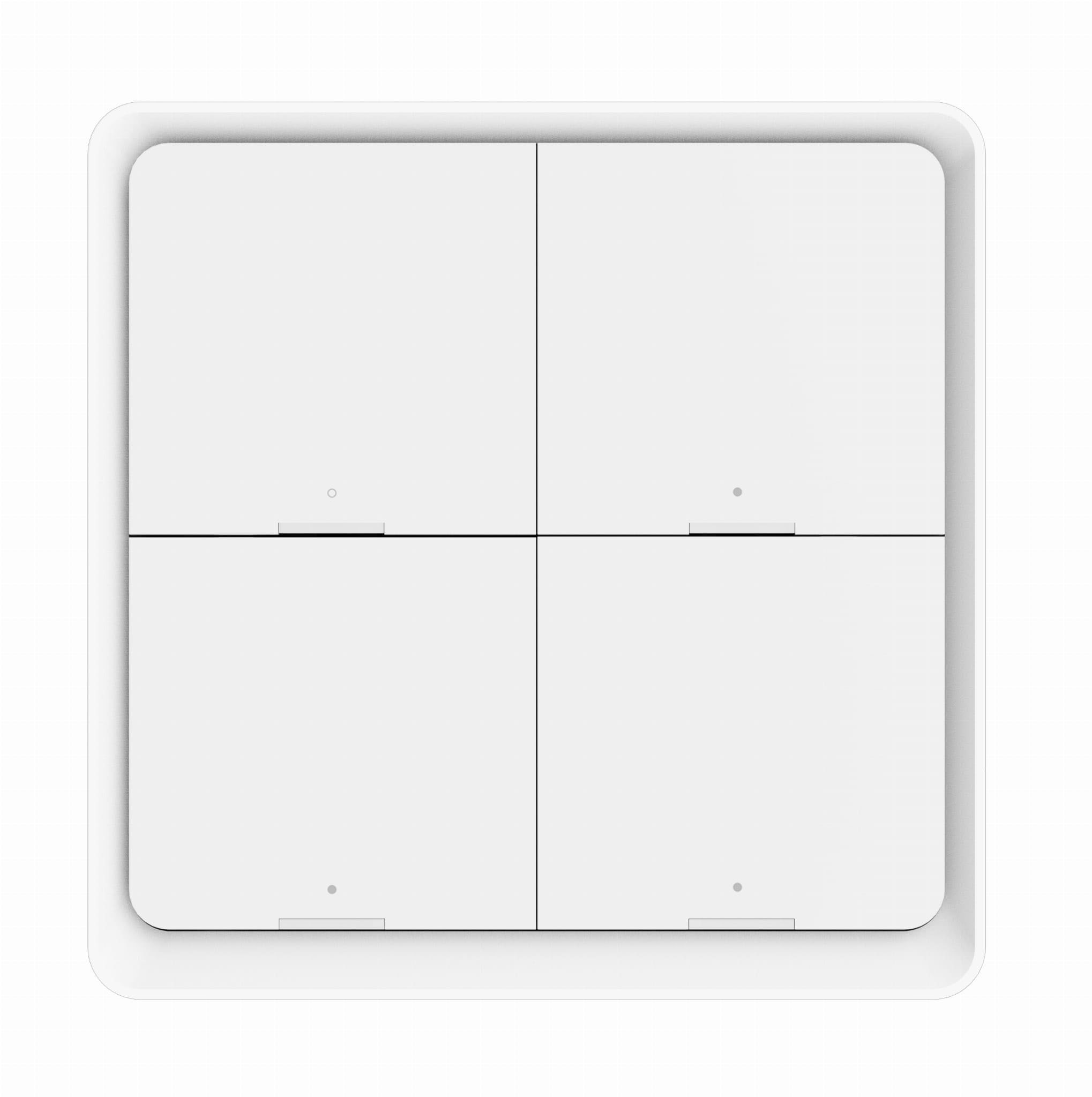 - Bezprzewodowy natynkowy włącznik/pilot ZigBee. Urządzenie pomimo 4 przycisków, może posiadać aż 12 przypisanych automatyzacji. Każdą automatyzację można uruchomić poprzez jedno naciśnięcie, dwa naciśnięcia lub dłuższe przytrzymanie przycisku.