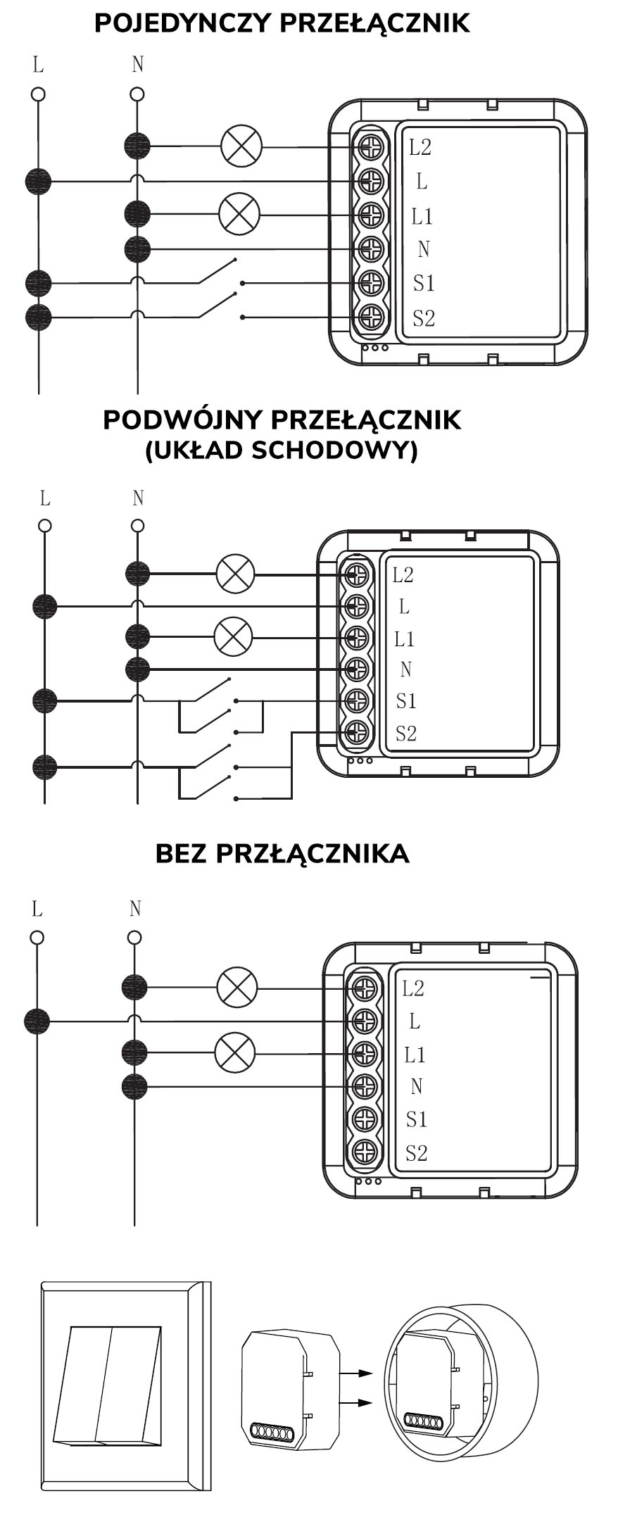 - ✅ Montaż: Mieści się w puszce końcowej za wyłącznikiem – najlepiej w puszce głębokiej lub kieszeniowej