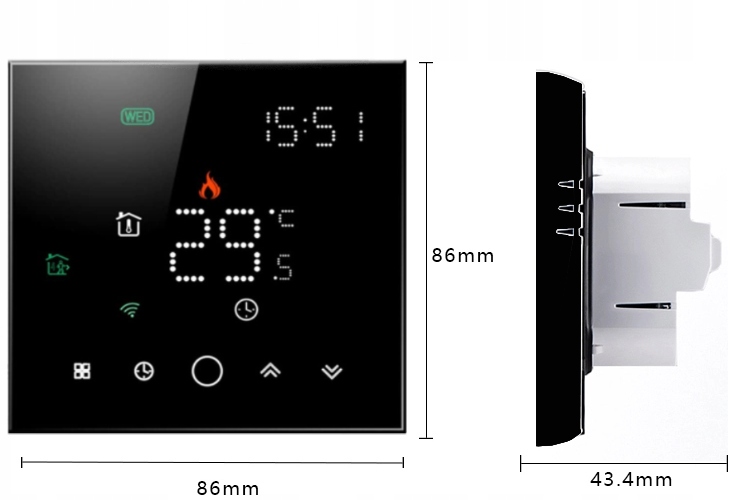 - 1x Termostat z ekranem z dotykowymi przyciskami