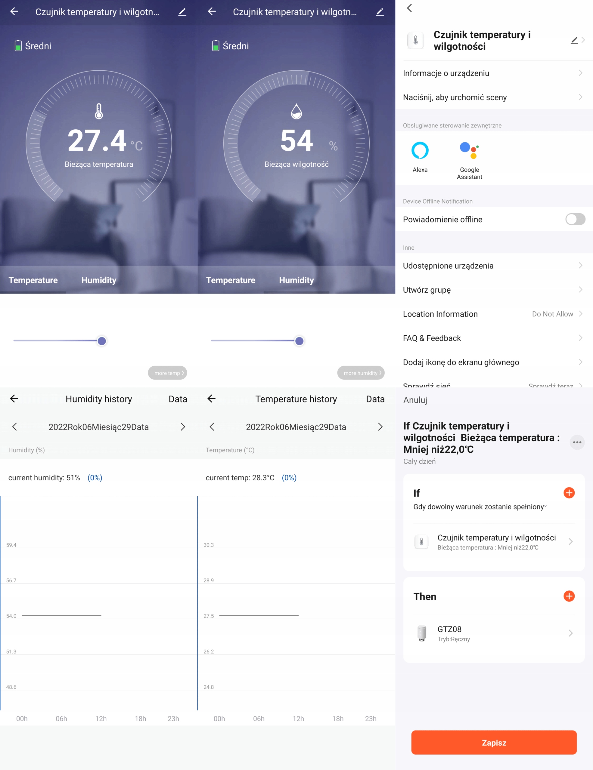 Nie chcesz tracić czasu na ręczną obsługę urządzeń i wolisz, żeby wszystko działo się dynamicznie? Zaprogramuj kilka urządzeń smart, które umożliwią automatyczną reakcję w dowolny sposób. Załóżmy, że posiadasz klimatyzację i chciałbyś się poczuć komfortowo w dni z wyższą temperaturą. Wystarczy w kilka prostych krokach w aplikacji Tuya ustawić inteligentną scenę, gdy na wykresie czujnika pojawi się temperatura wysoka od razu klimatyzacja załączy. Stwórz swoje własne automatyzacje bez limitu!